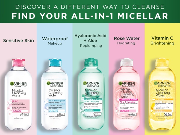 Garnier Micellar Cleansing Water gently removes up to 100% make-up and intensely cleanses skin of dirt, oil, SPF, pollution & dead skin cells – all in one step!