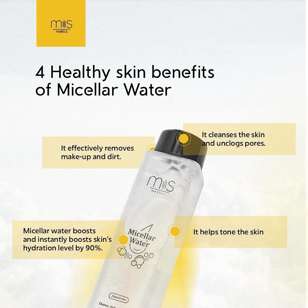 Msmestics micellar cleansing water lifts away dirt, makeup, and excess oil, all in just a few swipes.